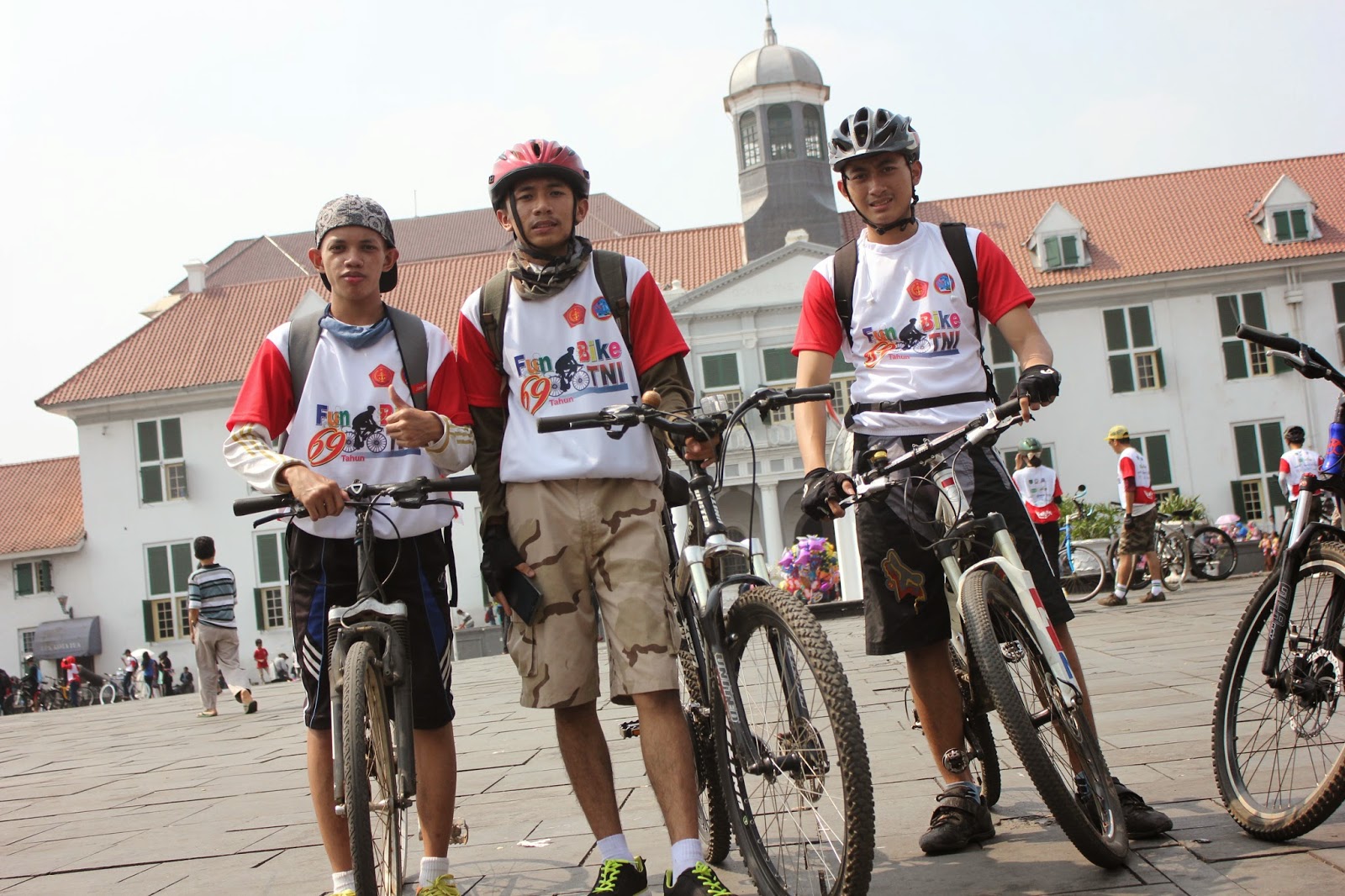 Yapss sekarang gw mau ngeshare foto-foto perjalanan kami saat Funbike TNI, event ini diadakan untuk memperingati HUT TNI ke-69 yang diadakan di jakarta, dengan jarak yang ditempuh sepanjang 25 KM dengan jumlah peserta yang sangat besar karena Rakyat sipil pun dapat mengikuti event ini dengan membeli tiket Funbike sebesar 25k, dan ternyata tercatat anggota peserta yang mengikuti acara ini sebanyak 1.901.928 orang. sehingga tercatat dalam Rekor muri dengan kategori Peserta Funbike terbanyak, gmana ngga banyak? jalan di Bundaran HI padat dengan jersey merah putih hahaha..